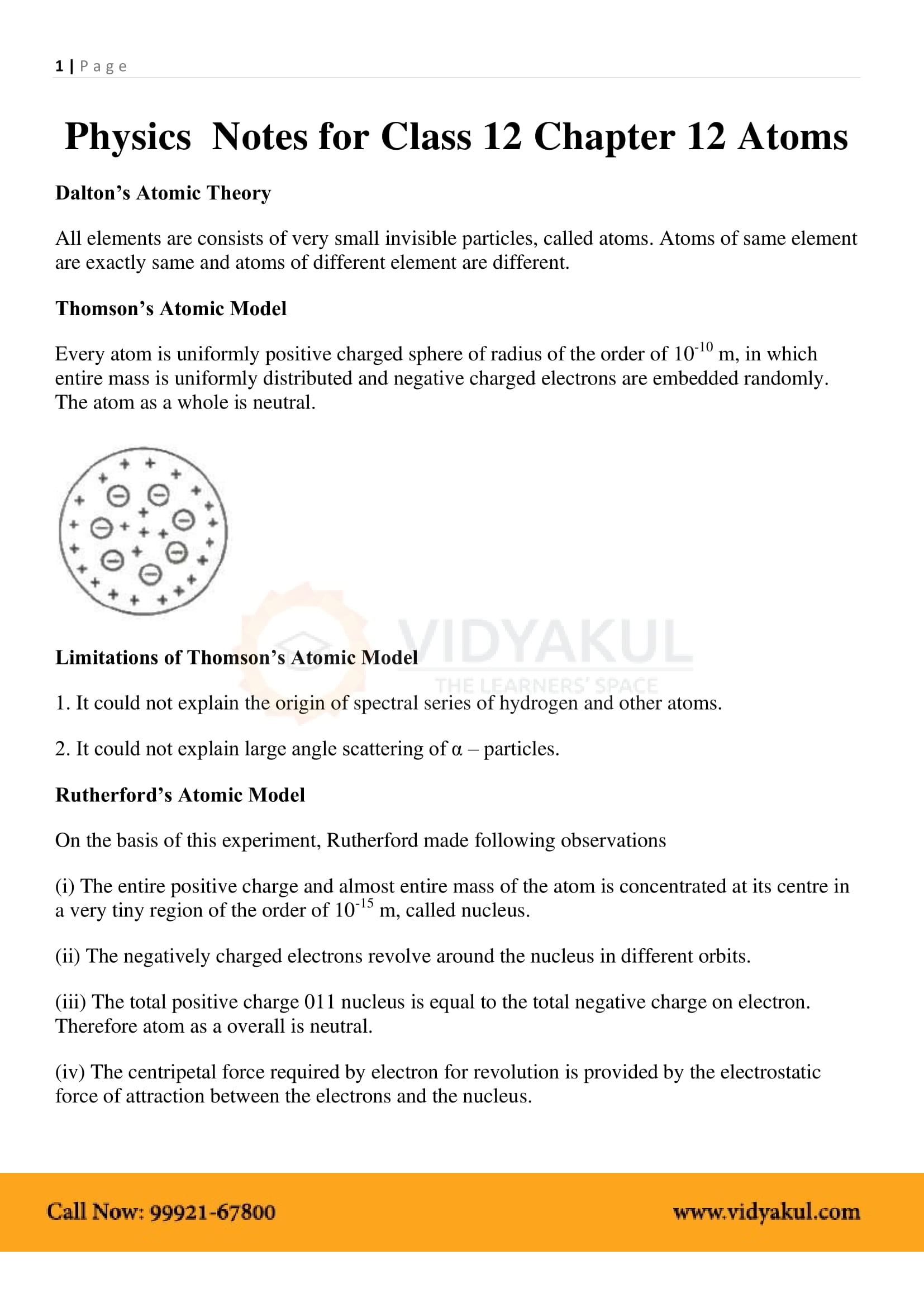 02/07/2019 · atoms class 12 notes chapter 12. .. Rutherford's alpha scattering experiment 2.