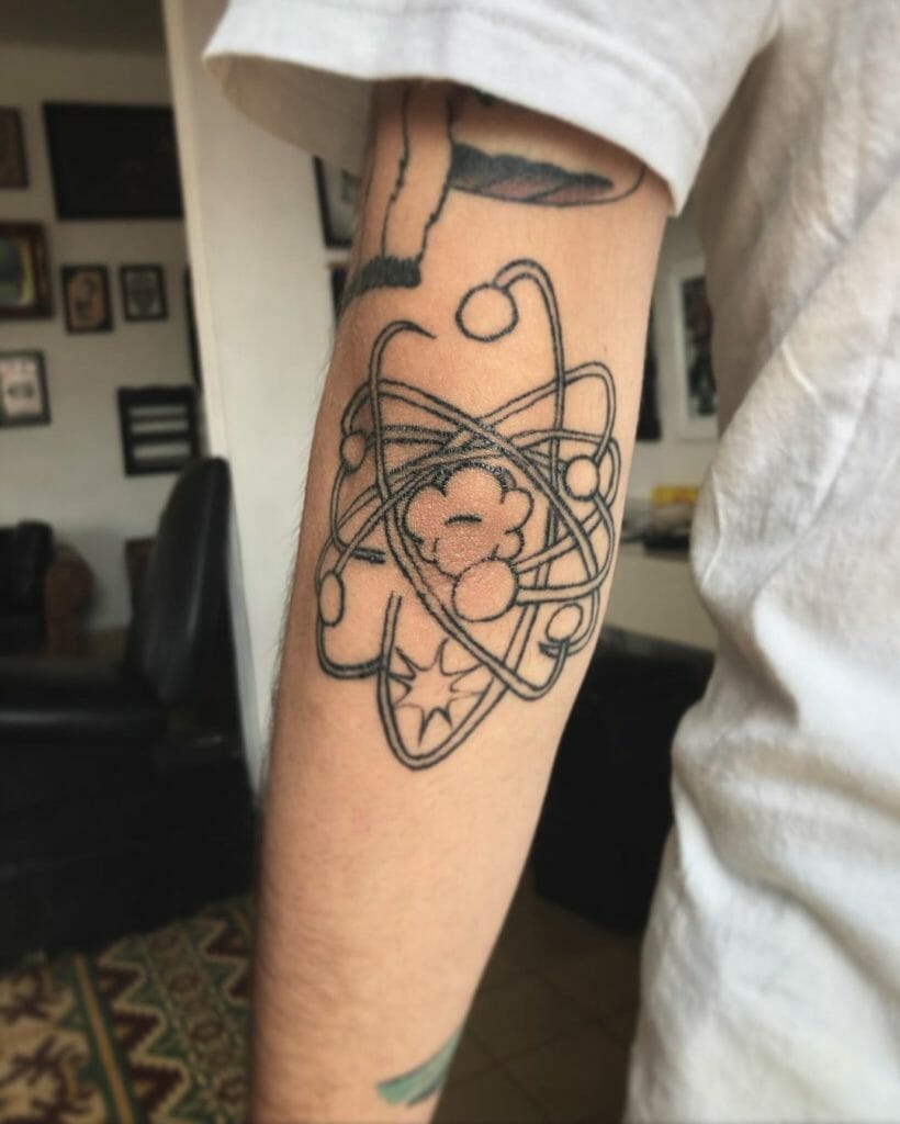 Tattoo on his right forearm. Discover (and save!) your own pins on pinterest Gather all the necessary information, choose the style, design and wizards. One cool thing about atomic tattoos is that they can be very mysterious... Here you can find everything about atom symbol tattoo meaning.